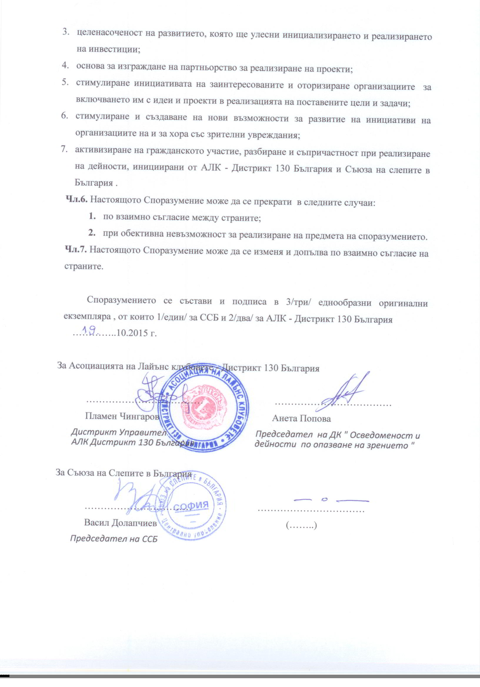 Споразумение Дистрикт 130 - Съюз на слепите - 2 стр.