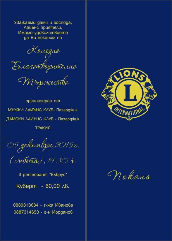 Покана Благотворителния летен бал на Лайънс клуб Варна