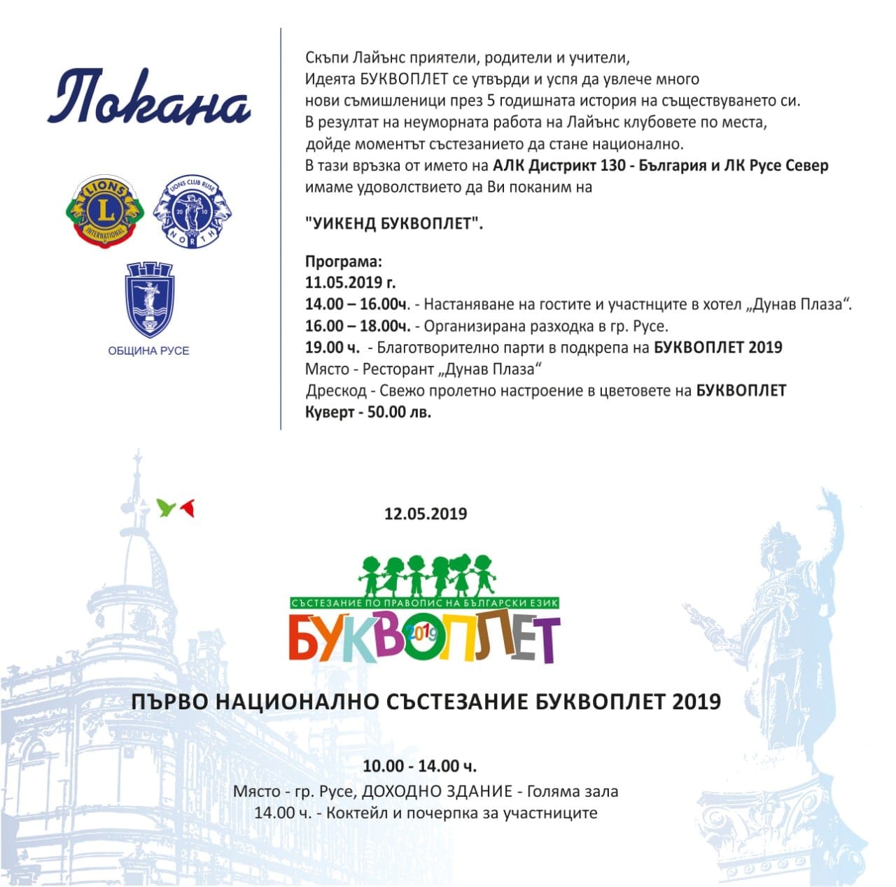 Покана за БУКВОПЛЕТ 2018 - гр. Русе